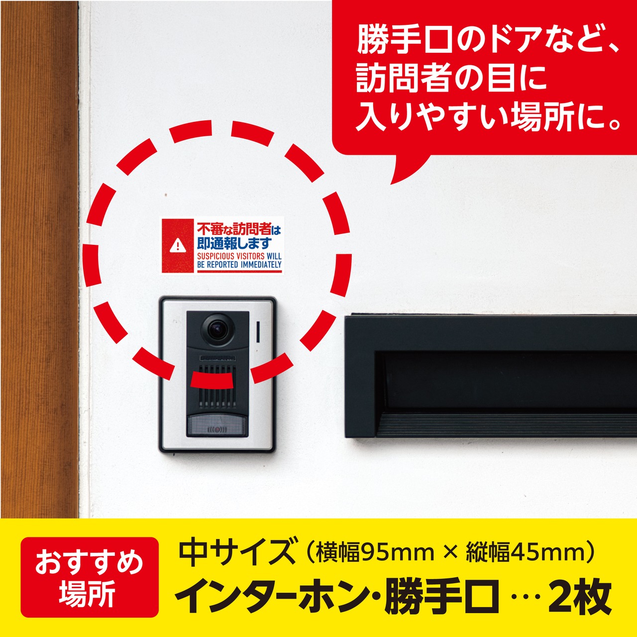 玄関・インターホン・窓ガラスなど、貼る場所に合わせた3種類のシール、合計9枚セット。