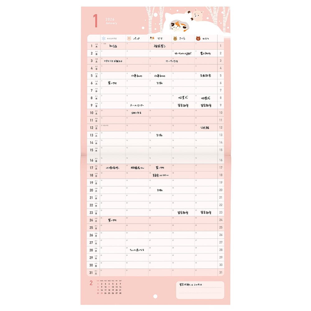どうぶつたちのスケジュールカレンダー2026年 1月始まり