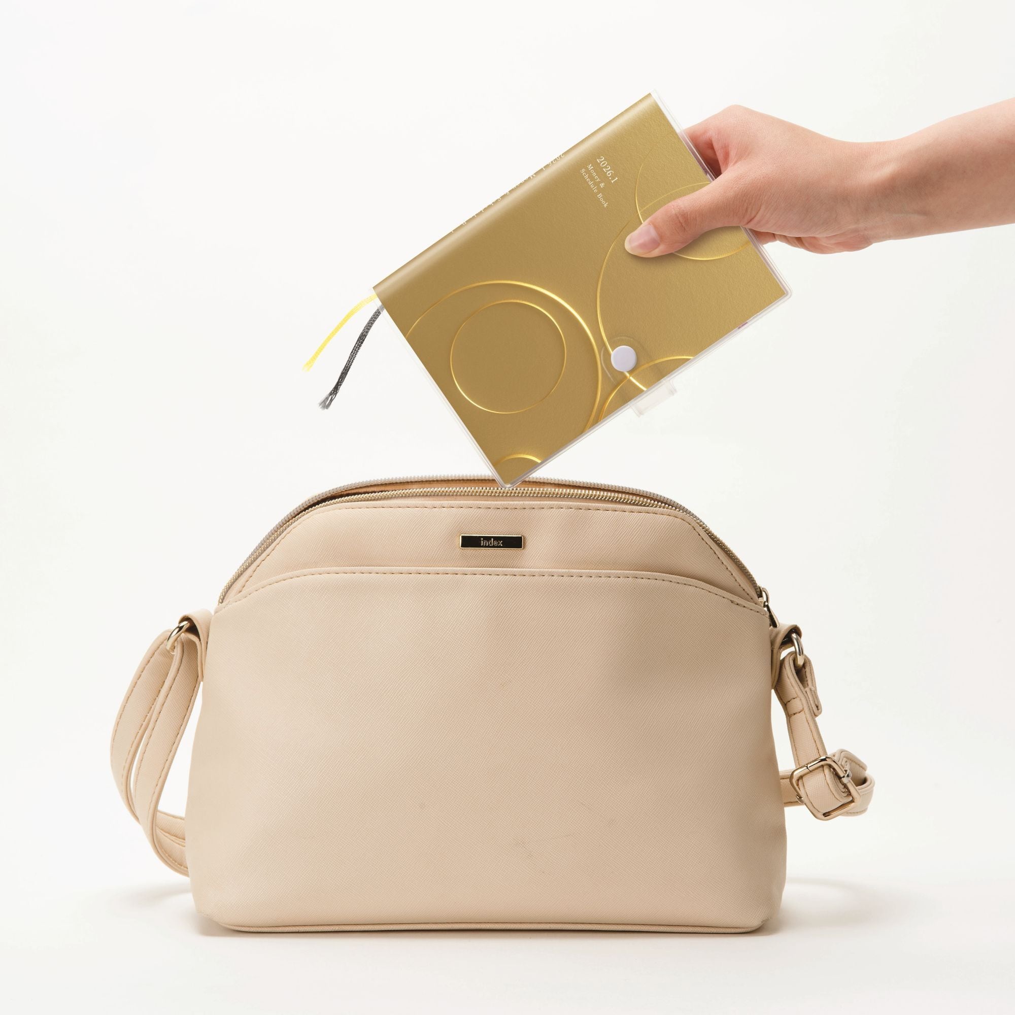■小さめのバッグにもすっぽり収まるコンパクトサイズ。ペンホルダーも付いているので持ち運びや外出先での記入にも便利です。
