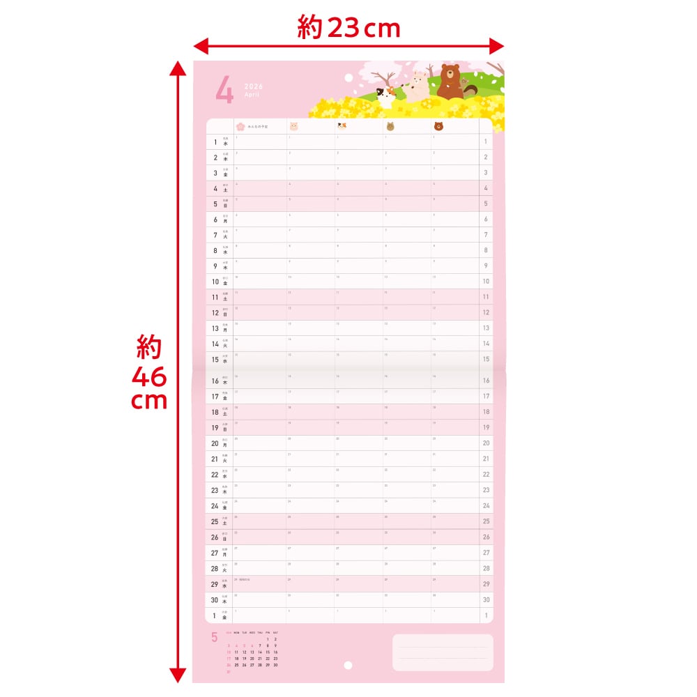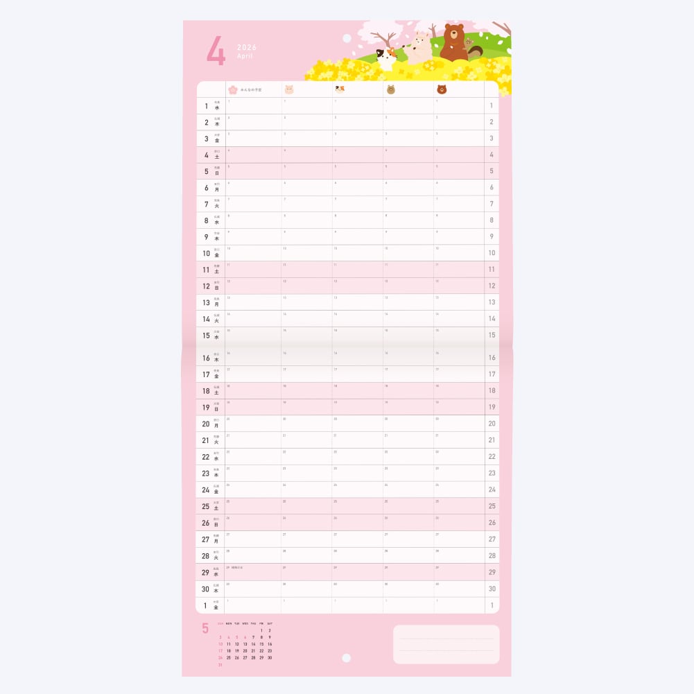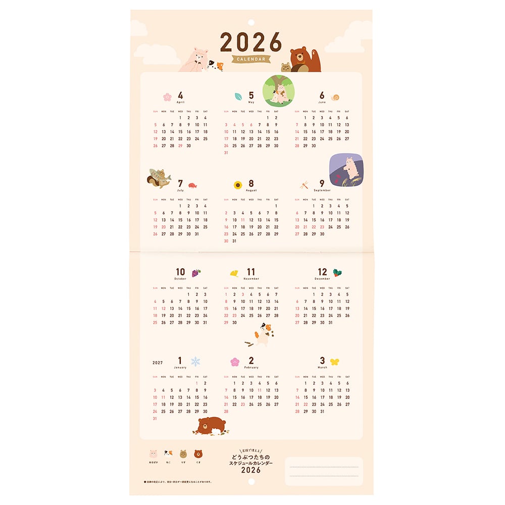 【スマホ対応】 どうぶつたちのスケジュールカレンダー 2026年 4月始まり