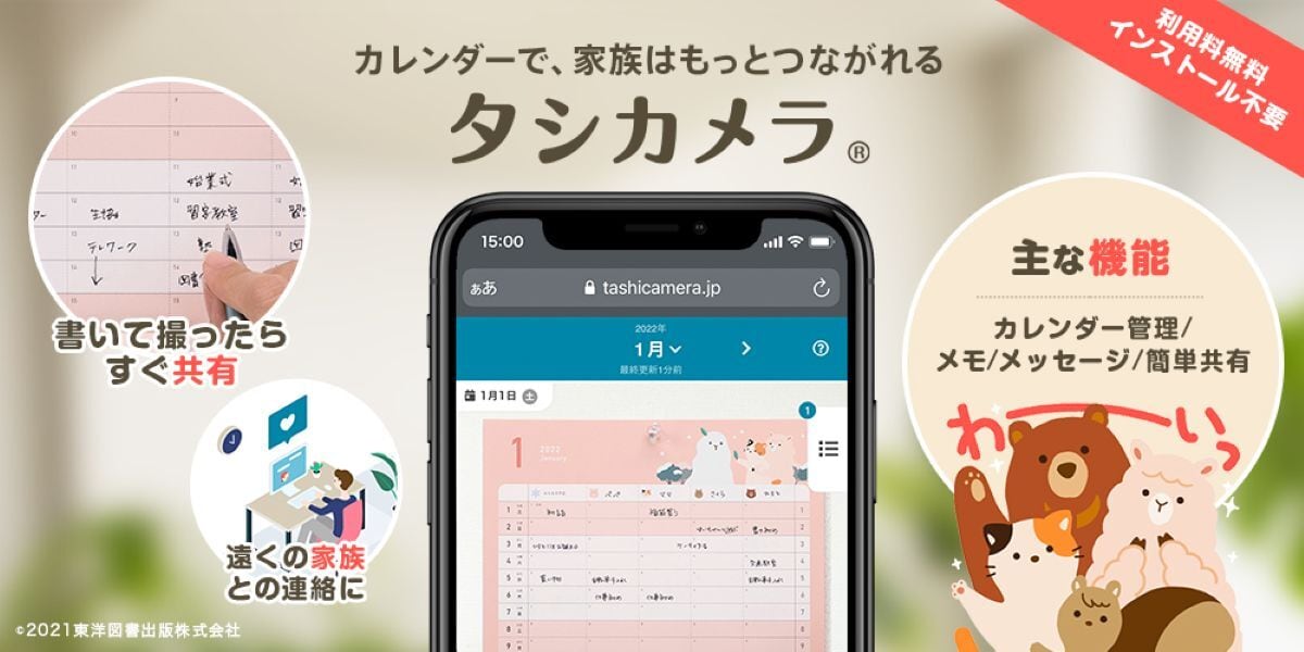 スマートフォンで、ご自宅のカレンダーをいつでもどこからでもチェックできるタシカメラ。