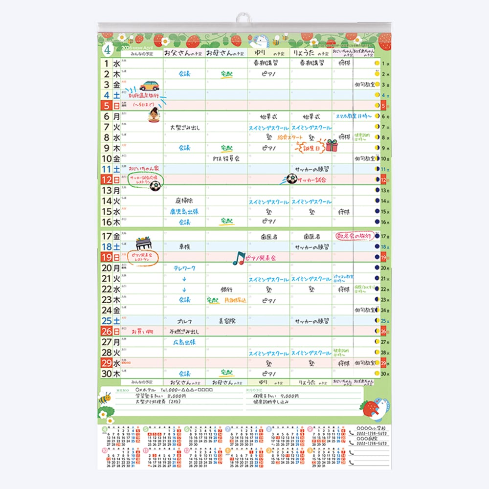 家族一人ひとりの予定を縦割りで分けて記入できるので、いつ誰の予定が入っているのか一目で分かります。