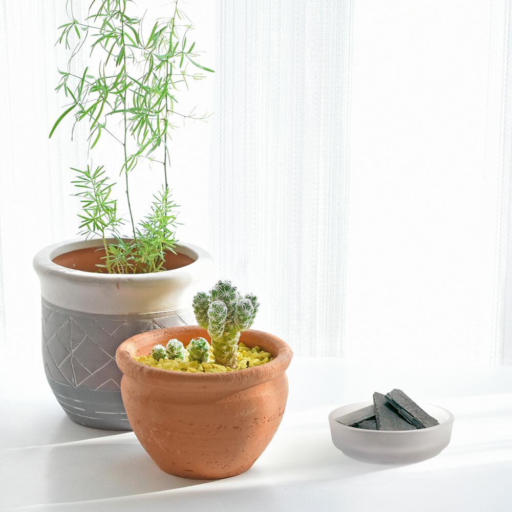 置く場所に適したサイズの器をご用意いただき、適量の竹炭を盛ってご使用ください。